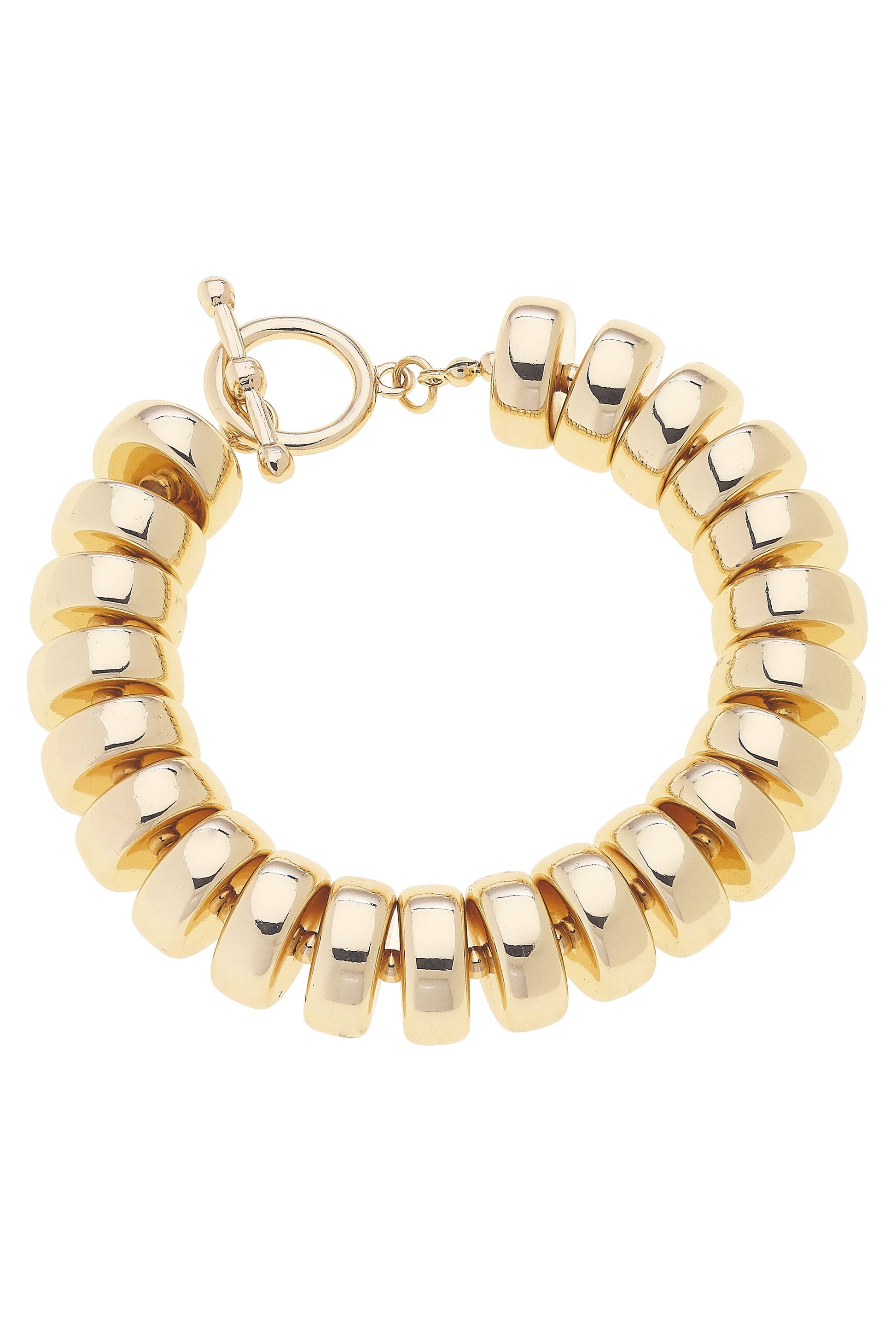 Sleek and stretchy, the Miranda coil bracelet wraps your wrist in shiny gold for a modern stacked effect.
